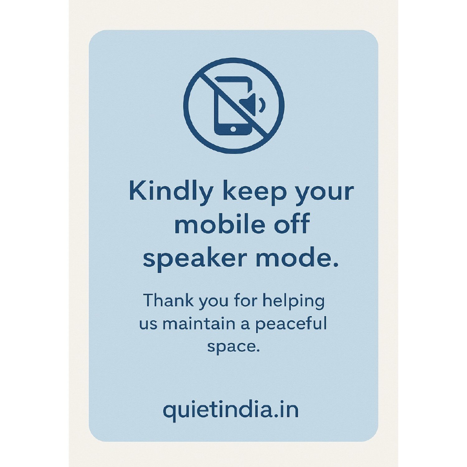This poster is designed as a visual shield against this invisible epidemic. Compact, durable, and versatile, it fits where it matters most: on reception desks, in elevators, on clinic walls, at school entrances, in office lobbies, at prayer halls, libraries, gyms, and residential society notice boards. Wherever it is placed, it works silently – nudging people to put phones on silent, lower their voices, and respect the sanctity of shared spaces.
